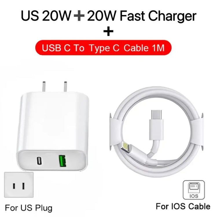 35w PD Fast Charger for iPhone 13 Pro 14 Plus 11 12 mini XS Max XR X iPad Air Quick Charging Cable USB-C Power Adapter